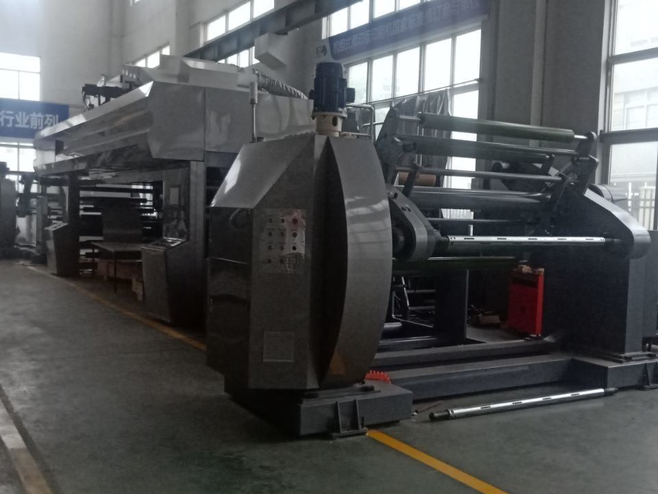 1El rebobinado adopta un servo control asíncrono de los rollos A y B, y los rollos A y B se pueden cambiar a alta velocidad sin detener la máquina a través del mecanismo de corte.